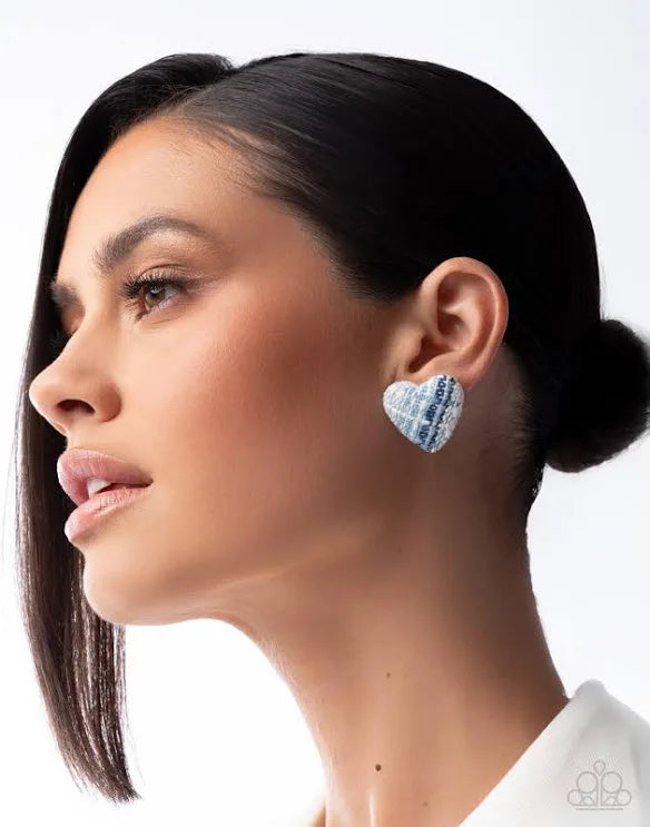 Woven with cozy threads of ivory and shades of light and dark blues, the puffy plaid pattern adds a whimsical pop of texture and warmth. Perfect for giving your outfit a flirty dose of flair, these fabric-covered studs are soft, sweet, and oh-so-stylish. Earring attaches to a standard post fitting.